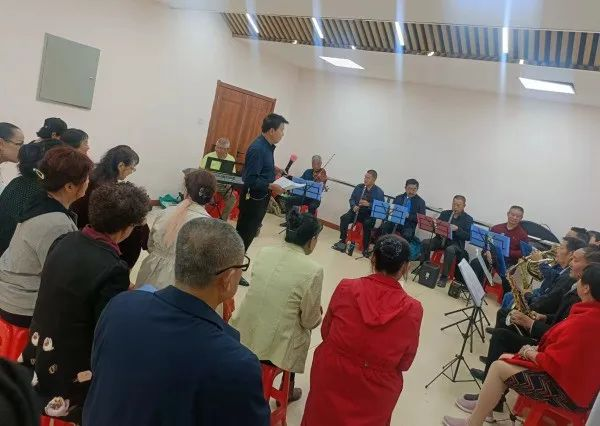 活动中,声乐课老师向居民讲授了乐理基本知识,居民从基础发声法和气息开始练习,并就高音部和低音部进行训练,居民们兴致勃勃、热情高涨。老师带领大家练习了《我爱我的祖国》《打靶归来》《珊瑚颂》等歌曲。