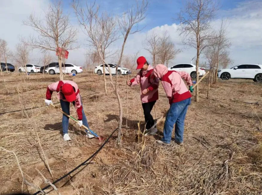 3月25日,库尔勒市第四幼儿园组织全体党员教师开展“植此青绿,共树未来”义务植树志愿服务。