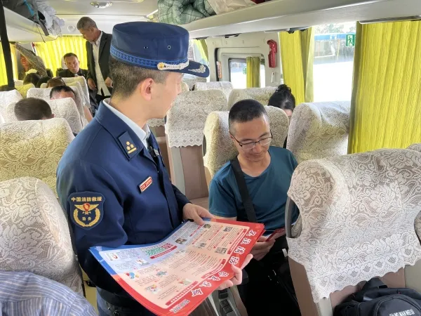 为提高小长假期间广大旅客的消防安全意识,保障旅客“五一”出行安全,近日,巴州消防救援支队库尔勒市大队走进库尔勒市火车站、新时州客运汽车站有限责任公司开展节前消防宣传。