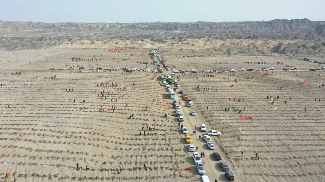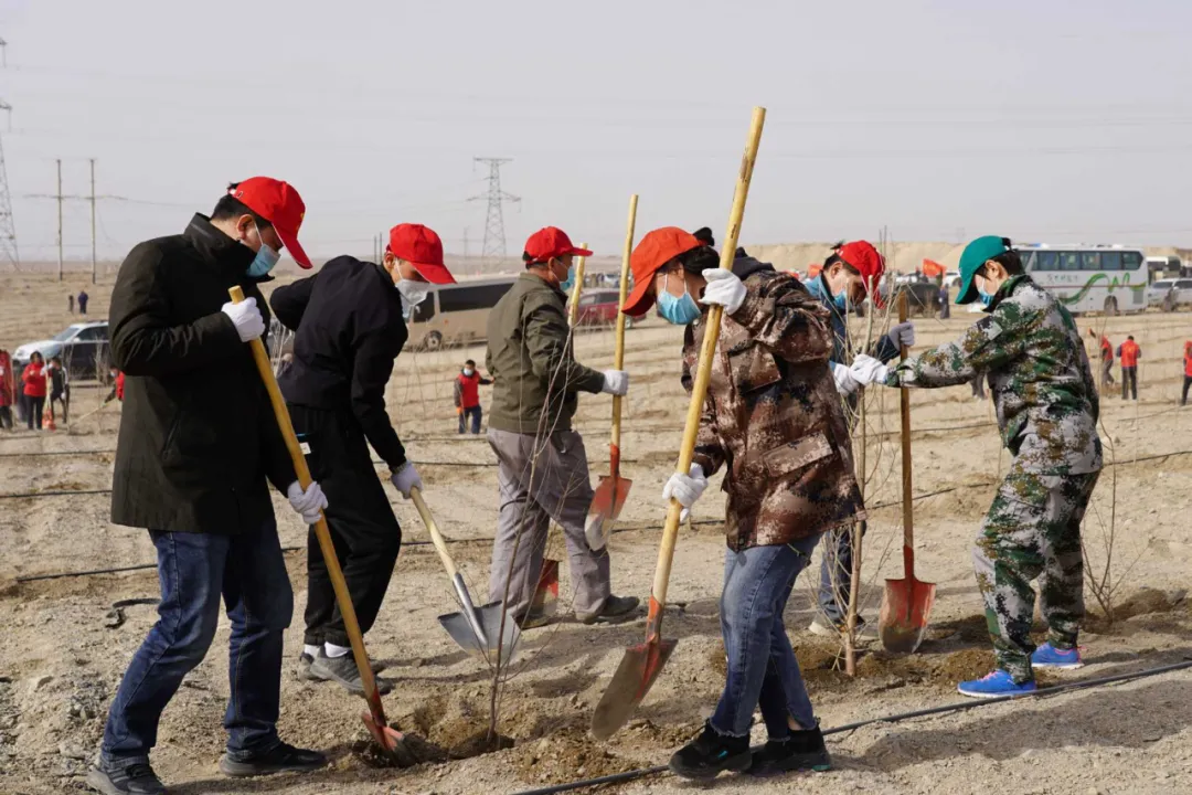 库尔勒各族群众在龙山开展植树造林活动。记者 李洁 摄