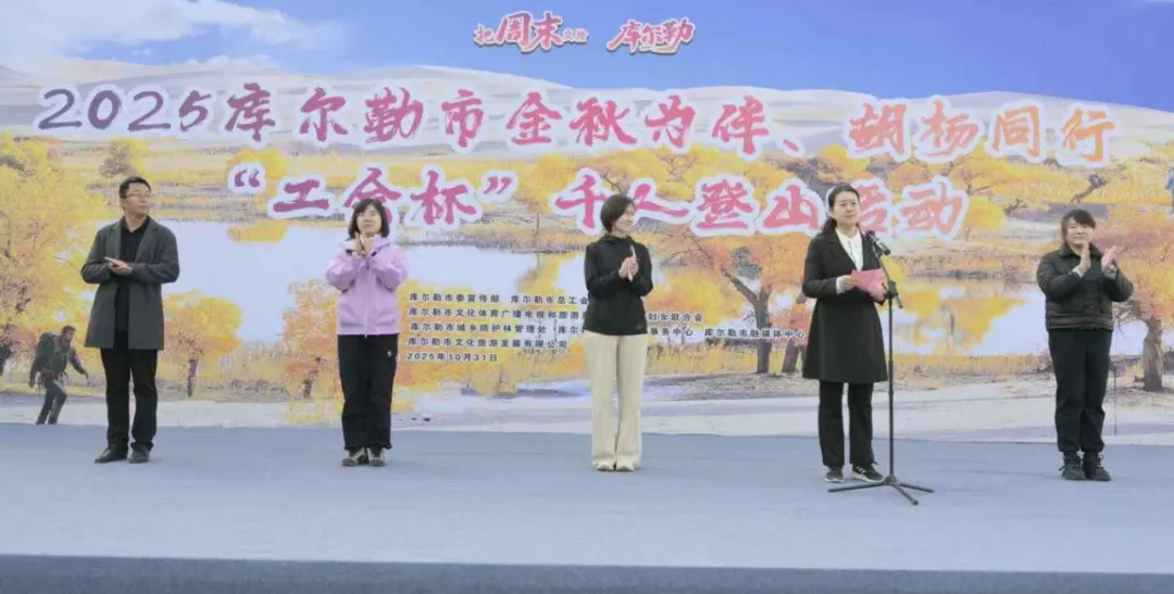 天山南麓秋意正浓,10月31日上午11时,把周末交给库尔勒——2025库尔勒市“金秋为伴胡杨同行”“工会杯”千人登山活动在龙山公园启动。