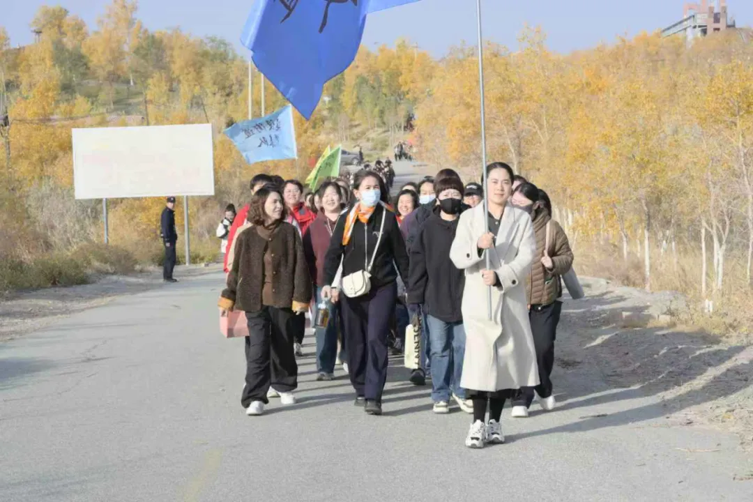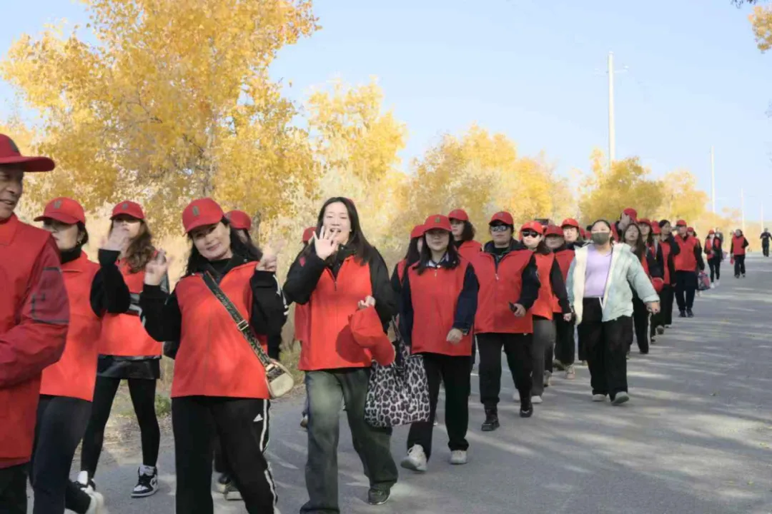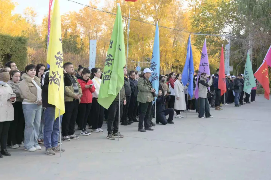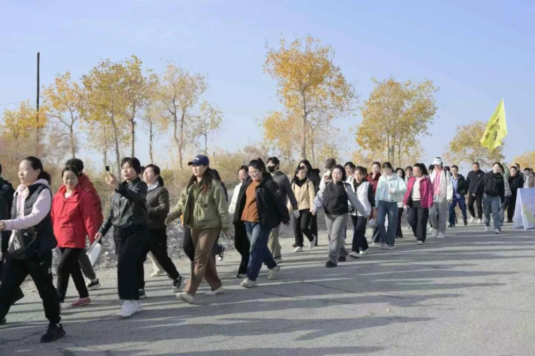 由全市各街道、教育系统、文旅系统等组成的15支代表队、千余名干部职工齐聚龙山脚下,整装待发。随着发令声响,登山队伍如洪流般涌向山道。全程5公里的路线蜿蜒于胡杨林间,金叶与蓝天相映衬,远山如黛,风景如画。登山队伍穿行其间,一路欢声笑语,运动的活力和静谧的胡杨相交融,构成一幅生机盎然的龙山登高图景。