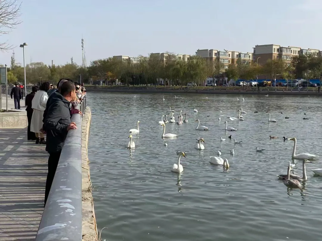 快看!库尔勒的斑马线上“游”出了一群天鹅