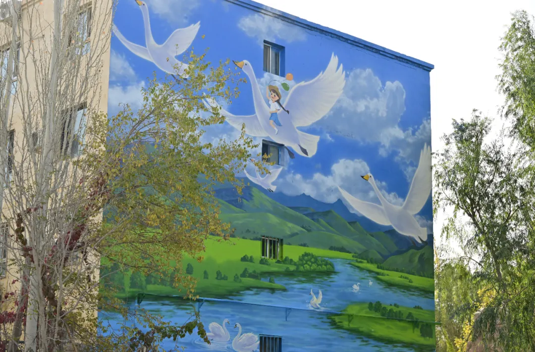 近日,库尔勒市杜鹃河畔,多幅天鹅墙绘惊艳亮相——洁白羽翼舒展于砖石之上,与河面上悠然游弋的百余只天鹅相映成趣。这一幅幅崭新的艺术“地标”并非单纯的装饰,而是库尔勒这座城市用20年,书写“人与天鹅共生、生态与城市共荣”的生动注脚。
