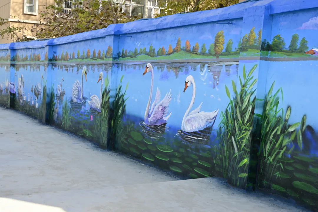 不止驿站,梨香街道对杜鹃河畔周围小区老旧街道和墙体进行量化提升,创作40余幅天鹅主题墙绘,讲述天鹅相恋的故事,描绘出人与天鹅和谐共生的美丽画卷,吸引众多市民和游客在此驻足拍照打卡。梨香街道致力于将周围街区打造成以“河流为媒、天鹅为誓、梨花为证”为主题的“天鹅誓约·爱语巷”双影漫道街区,让生态之美与艺术之美深度交融。