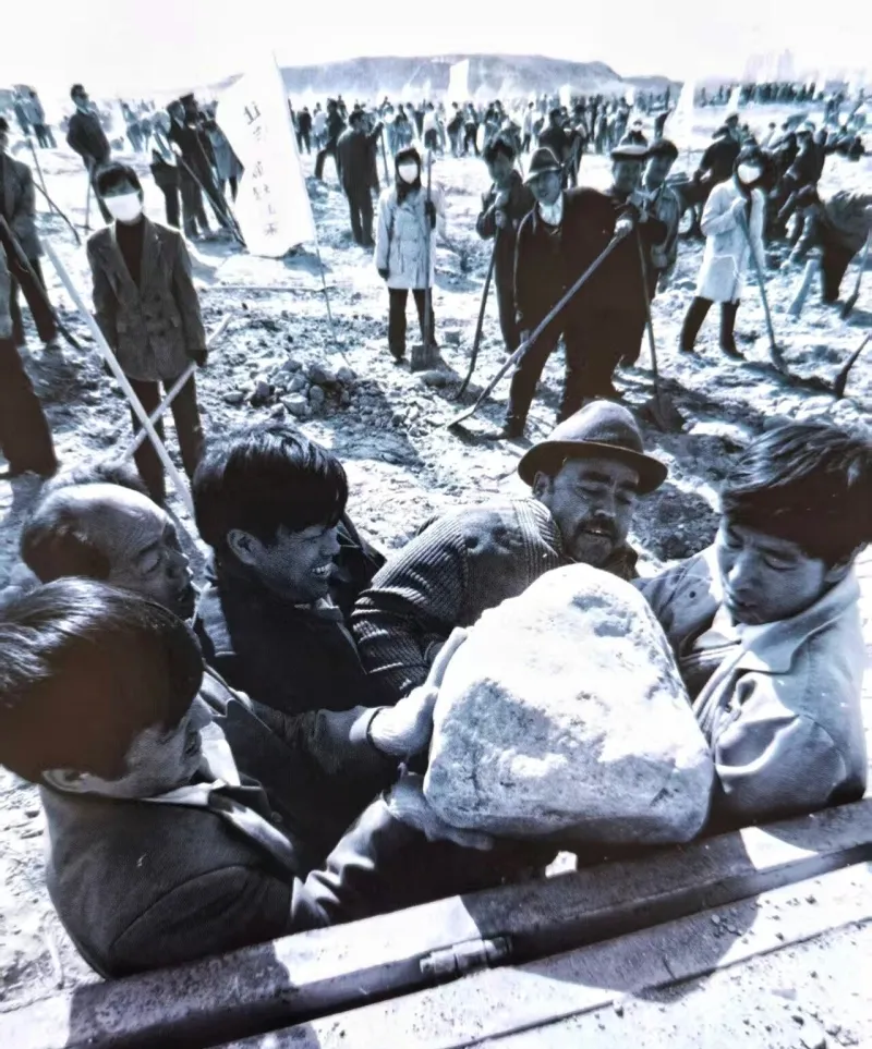 1998年3月10日,市民在库尔勒龙山搬走石头准备植树。(图片摘自人民日报1998年3月24日第3版 王立华摄)