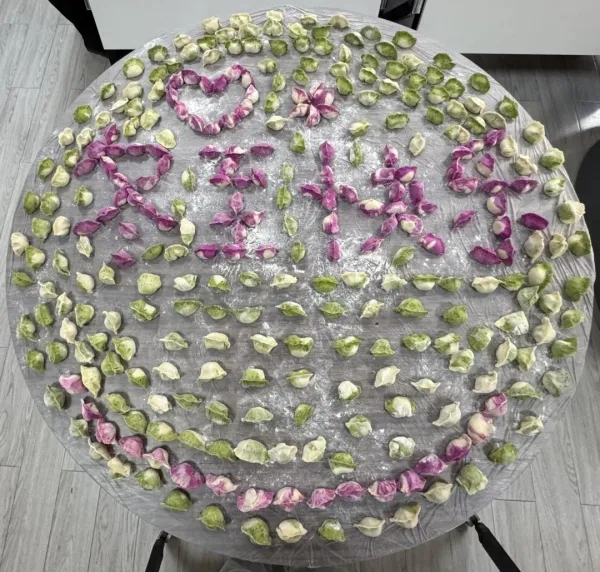 12月21日,库尔勒市团委、市项目办在志愿者综合公寓开展“暖饺传情·志愿同行”冬至主题活动,50余名志愿者齐聚一堂,一同包饺子、共叙情深。同时,向快递员、外卖员等新就业群体送上冬至暖心问候。(记者 孙诗涵)