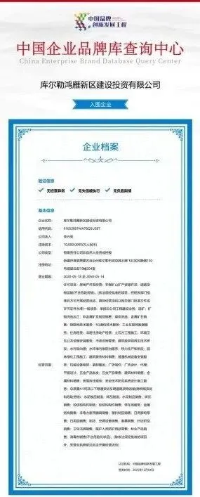库尔勒鸿雁新区建设投资有限公司入选中国品牌创新发展工程