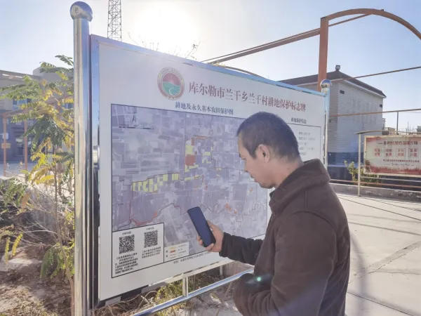 兰干村村民喀吾力·喀迪尔说:“以前知道要保护农田,但哪块地不能动、动了会怎样,都说不清楚。现在牌子上写着永久基本农田的四至界限,扫码还能看到自然资源部官方信息,就像给土地办了户口本。”这种认知转变的背后,是耕地保护从行政主导向群众参与的升级。