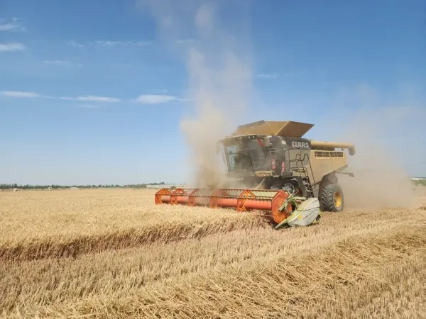 库尔勒小麦收割现场。