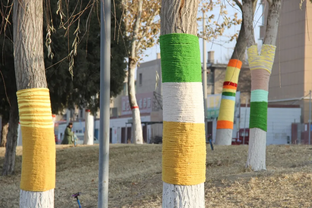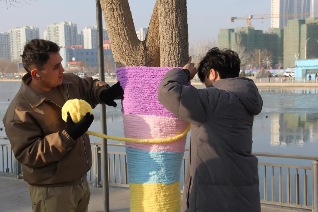 志愿者雷然说:“能为第二故乡的美化出一份力,感觉特别有意义。每一圈毛线都藏着我们对梨城的热爱,希望这些树木能温暖过冬,来年春天枝繁叶茂。”
