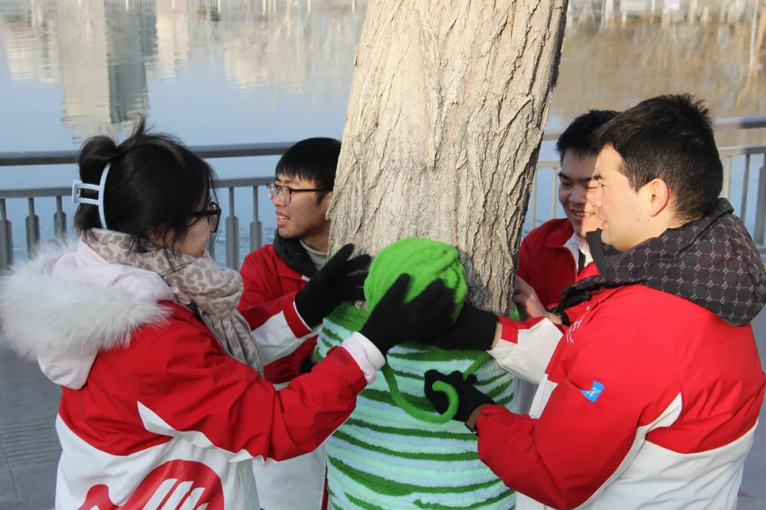 西部计划志愿者为天鹅驿站旁树木编织“多巴胺毛衣”