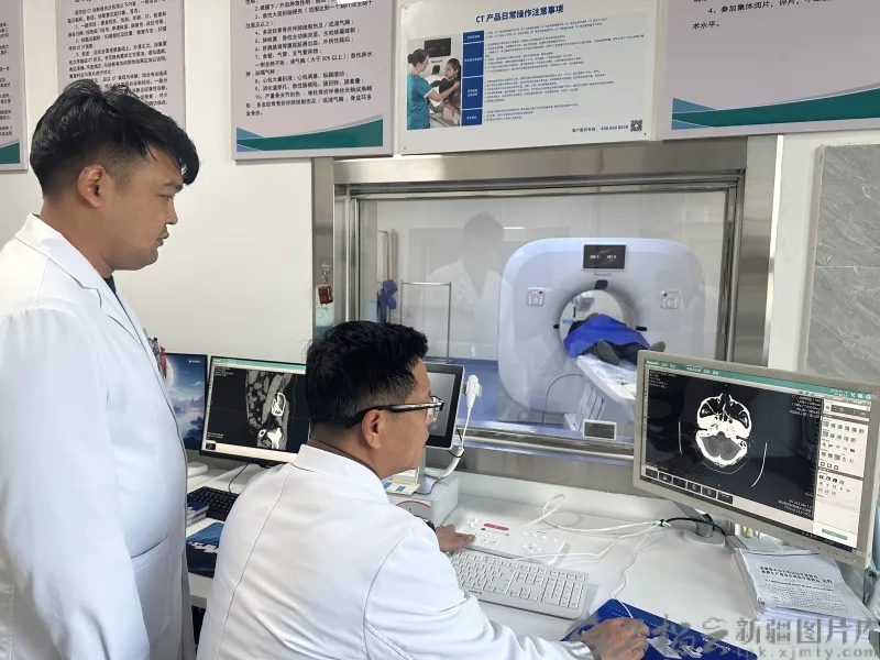 1月14日,库尔勒市紧密型医共体总院阿瓦提乡卫生院分院内,工作人员正在给村民做CT检查。石榴云/新疆日报记者 杜建辉 摄