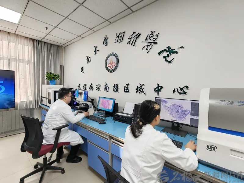 1月14日,库尔勒市紧密型医共体总院的湘雅医院远程病理南疆区域中心内,医生正在阅片。石榴云/新疆日报记者 杜建辉 摄
