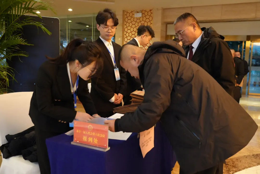 报到现场,代表们在工作人员引导下,领取证件与会议材料。完成报到手续后,代表们迅速进入“会议状态”,认真研读会议材料、熟悉会议议程和相关报告内容,相互交流履职心得。