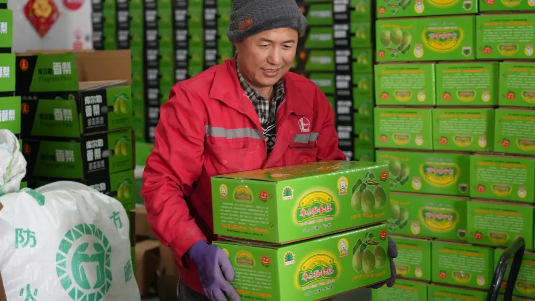 这些车辆将载着全程恒温保护的库尔勒香梨,驶向北京、河北、郑州、山东等地前置仓,进而辐射周边省市大小商超。今年,客户名单上除了永辉、京东等老客户外,又新增了盒马、中石油等大型连锁商超及企业,订单量在春节前迎来全年高峰。