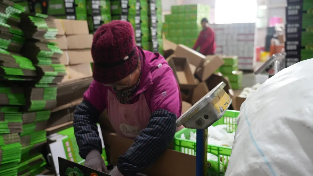 当天,新疆戈壁农哥农业科技有限公司工作人员正忙着对接线上订单。“腊八以来,订单量激增,日常一天一两千单,高峰时要加班加点。”新疆戈壁农哥农业科技有限公司总经理杨政说。截至目前,公司已接到近2万箱订单,预计春节前总订单将达到3.5万箱左右。