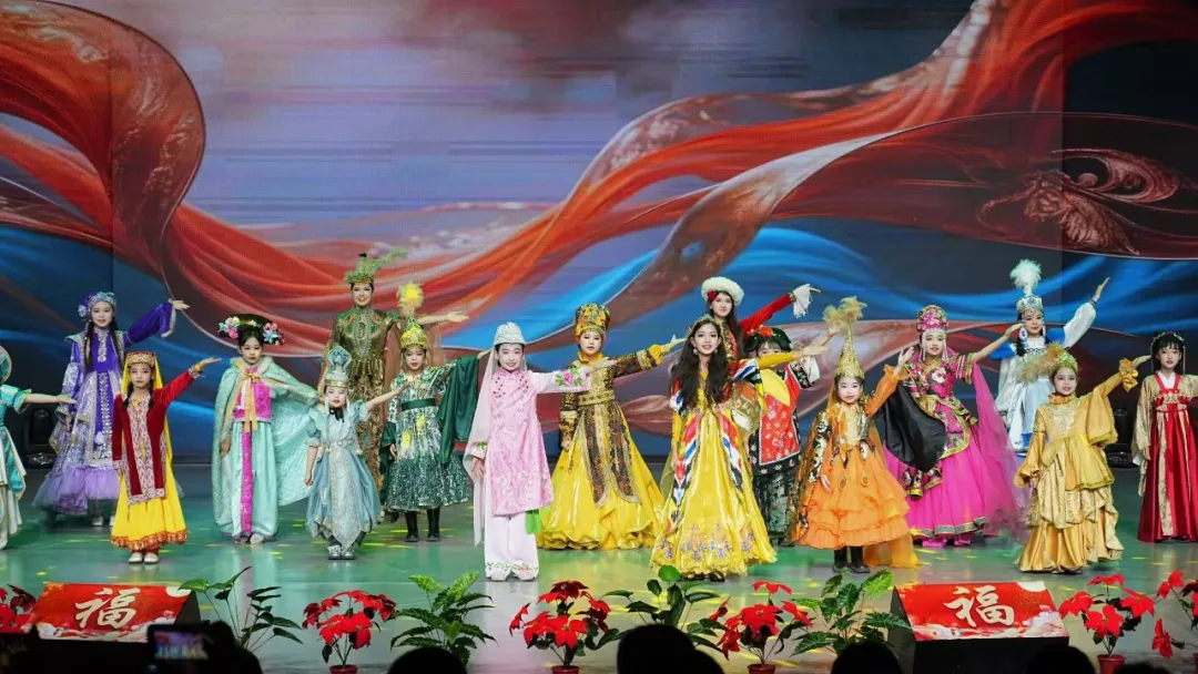 晚会在欢快热闹的开场舞《萌娃闹春骏马送喜》中拉开帷幕,小演员们身着节日盛装,用充满活力的舞姿瞬间点燃全场氛围。整台晚会分为“灯火初上·良宵启程”“月圆人圆·情满今宵”“星河入梦·共赴新程”三个篇章,节目涵盖歌舞、小品、非遗弹唱、民族服饰秀、戏曲联唱、舞台剧等多种艺术形式,内容丰富、层次鲜明,既有传统文化的厚重底蕴,又有现代舞台的创新表达。