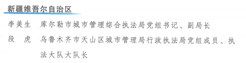 2025年,中央城市工作会议胜利召开,提出建设现代化人民城市目标任务,并对加强城市治理工作作出重要部署。各地城市管理部门认真践行人民城市理念,坚持执法为民、服务为先,不断优化执法服务方式,持续加强执法队伍建设,巩固深化“强基础、转作风、树形象”专项行动取得了新的进展和成效。为表扬先进,充分发挥示范带动作用,决定对在2025年度巩固深化“强基础、转作风、树形象”专项行动中表现突出的95个单位和95名个人予以通报表扬。其中,库尔勒市城市管理综合执法局党组书记、副局长李美生荣获表现突出个人。