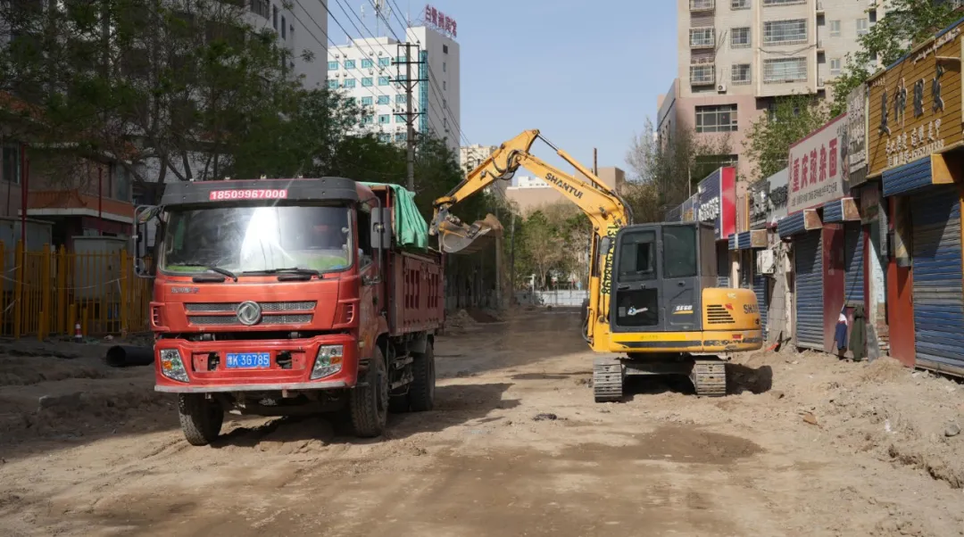 4月14日,库尔勒市巴州宾馆巷道改造现场一派繁忙的景象,挖掘机轰鸣作业,施工人员有序开展管网铺设、路面平整等工作。这条连接人民东路与孔雀河,全长448米的老巷道,将于5月告别“老破旧”,变身畅通整洁的便民幸福路。
