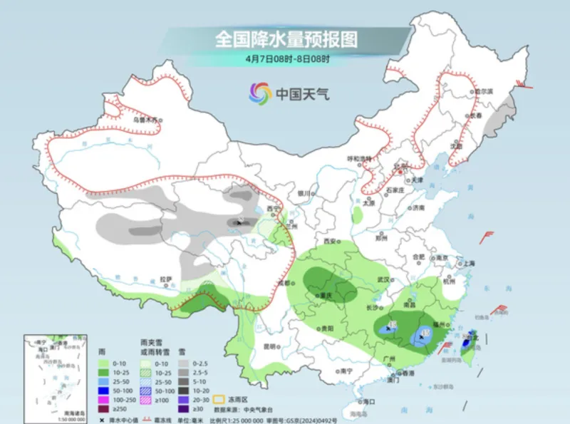 预计6日白天至7日夜间,北疆西部北部、南疆西部山区、昆仑山北坡等地部分区域有小雨或雨夹雪(中高山区为雪),山区局地有中到大雨或雪。上述部分区域及东疆伴有5级左右西北风,风口风力8—9级,阵风11级左右。