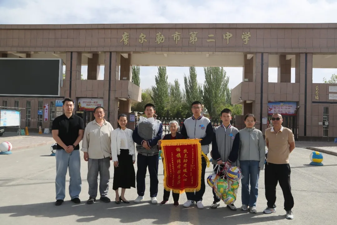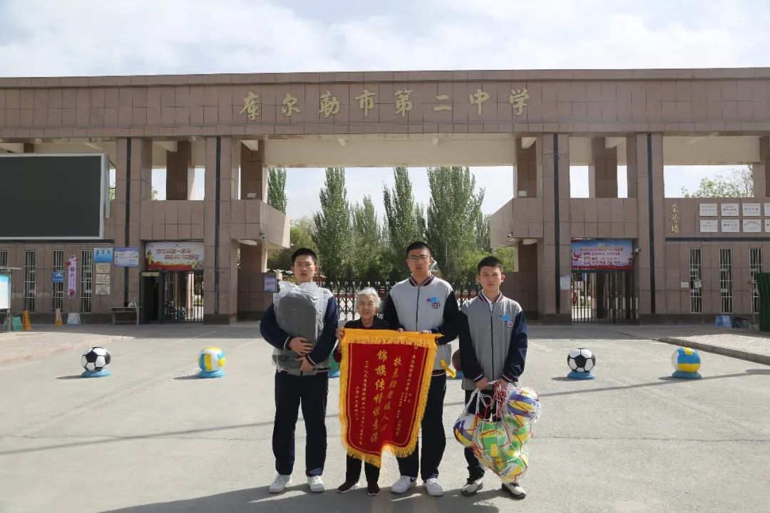 近日,库尔勒市第二中学收到一份特殊的“礼物”:88岁高龄的聂华英老人专程来到学校,将一面饱含谢意的锦旗送到高二(3)班刘昊、马俊杰、迪力木拉提·艾尔肯三位同学手中,以此感谢他们在危急时刻挺身而出、暖心救助的善举。