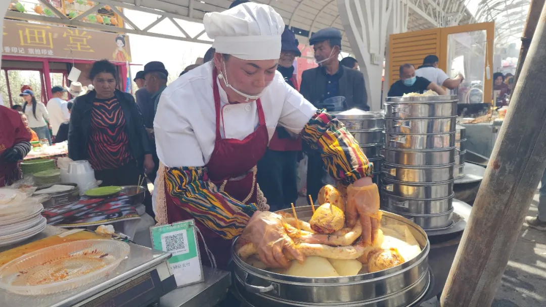 “生意比平时好太多了,估计今天能卖5000元。”4月4日,在库尔勒2026梨花季阿瓦提乡分会场梨花美食区,经营抓饭、薄皮包子、羊杂的商户玛利亚木·可然木的摊位前始终排着长队,她的羊杂、抓饭口感地道,备受游客青睐。玛利亚木·可然木擦着额头的汗珠,脸上满是笑意:“梨花季把全国各地的游客都吸引来了,我们的特色美食能被更多人品尝到,特别有成就感。”