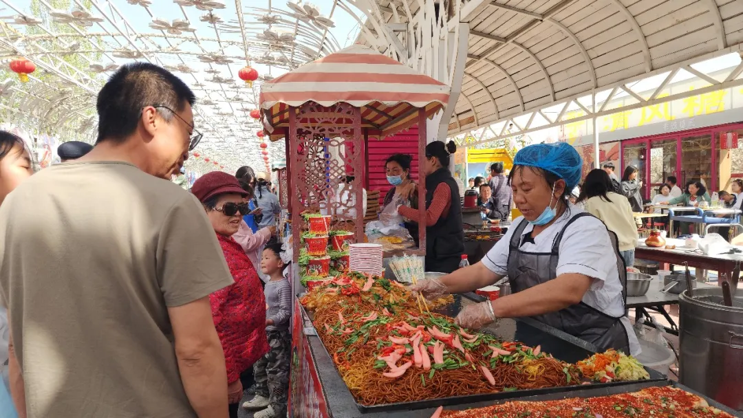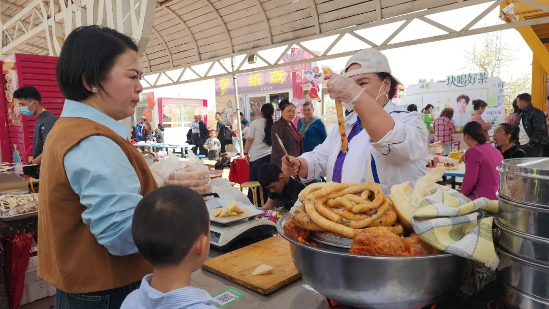农副产品区,香梨膏、农家蜂蜜、各色干果、新鲜果蔬等本地农特产品琳琅满目,皆是村民自产自销的原生态好物;非遗文创区,梨木根雕、民族刺绣、葫芦画等手工艺品精致别致,每一件都饱含梨乡的文化底蕴;梨花美食区更是烟火升腾,梨花馕、梨花酸奶、梨花鸡汤、香梨烤串等特色美食香气四溢,将梨花元素与本地风味完美融合,成为游客争相打卡的舌尖美味。