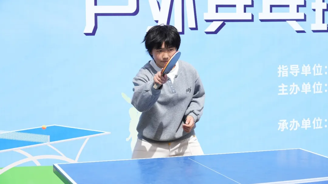 与专业竞技赛事不同,本届比赛报名环节无地域、职业限制,汇聚了各年龄段的乒乓球爱好者。选手卫彦妤今年13岁,从7岁起便开始打乒乓球。她身姿灵动、眼神专注,面对成年选手毫不逊色。“很高兴能参加本次比赛。以前都在室内打球,今天在室外比赛,有风有阳光,对步伐和手感要求更高,对我来说既是新挑战,也是进步的机会。希望以后能有更多全民化的乒乓球赛事,让热爱这项运动的人有更多展示自己的机会。”卫彦妤说。