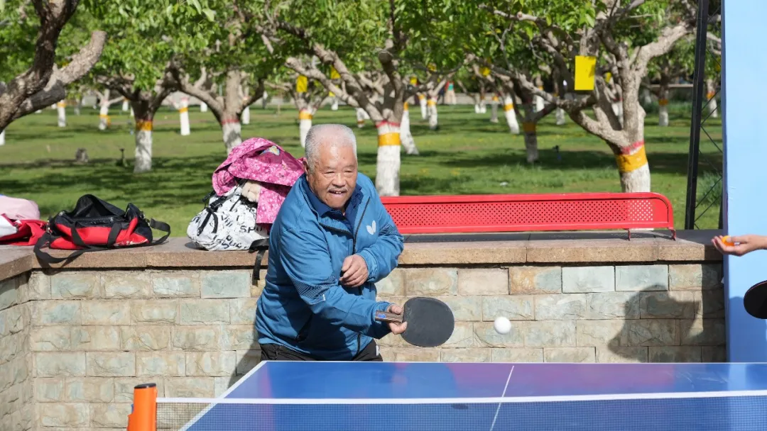 赛场上,一群精神矍铄的中老年选手格外引人注目。他们中不少人已头发花白,有的还佩戴着腰部护具,但依旧步伐稳健、挥拍从容,尽显对乒乓球运动的热爱。选手张良奎今年73岁,比赛间隙常观看其他选手的比赛,每遇好球总会由衷赞叹。张良奎说:“退休后,一有时间我就喜欢和朋友们一起打乒乓球。打乒乓球让我身体硬朗、心情舒畅,只要能挥拍,我就想一直站在球台边上。”