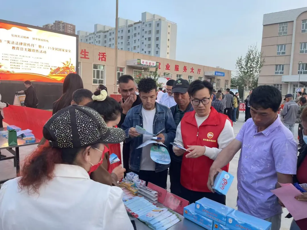 现场,市委统战部干部开展铸牢中华民族共同体意识宣讲,市总工会及社区开展衣物捐赠、免费理发、义诊等活动。还设置有奖答题、反诈体验等环节,活动形式丰富多样,有效营造尊法学法守法用法的良好氛围。