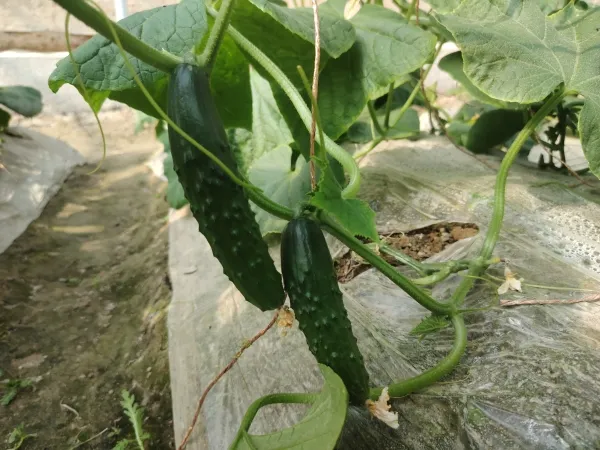 走进村民白胜模的黄瓜大棚,棚内一垄垄黄瓜苗整齐排布、长势旺盛,粗壮的藤蔓顺着牵引绳向上攀爬,翠绿的叶片层层叠叠,嫩黄的花蕊下藏着鲜嫩的小黄瓜,满眼生机,丰收可期。