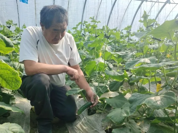 “今年,我首次尝试种植了1.5亩黄瓜,从2月初完成育苗定植开始,全程以标准化、精细化模式管护,严格把控棚内温湿度,科学开展水肥施加、藤蔓修剪、病虫害绿色防控,每日细心巡查秧苗长势,希望今年能卖个好价钱。”白胜模说。