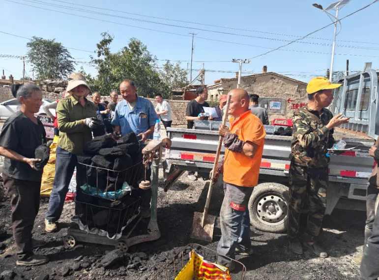 发放现场,社区工作人员与志愿者分工明确,引导居民排队登记,协助搬运煤炭,耐心解答居民疑问,现场秩序井然,处处洋溢着温馨和谐的氛围。