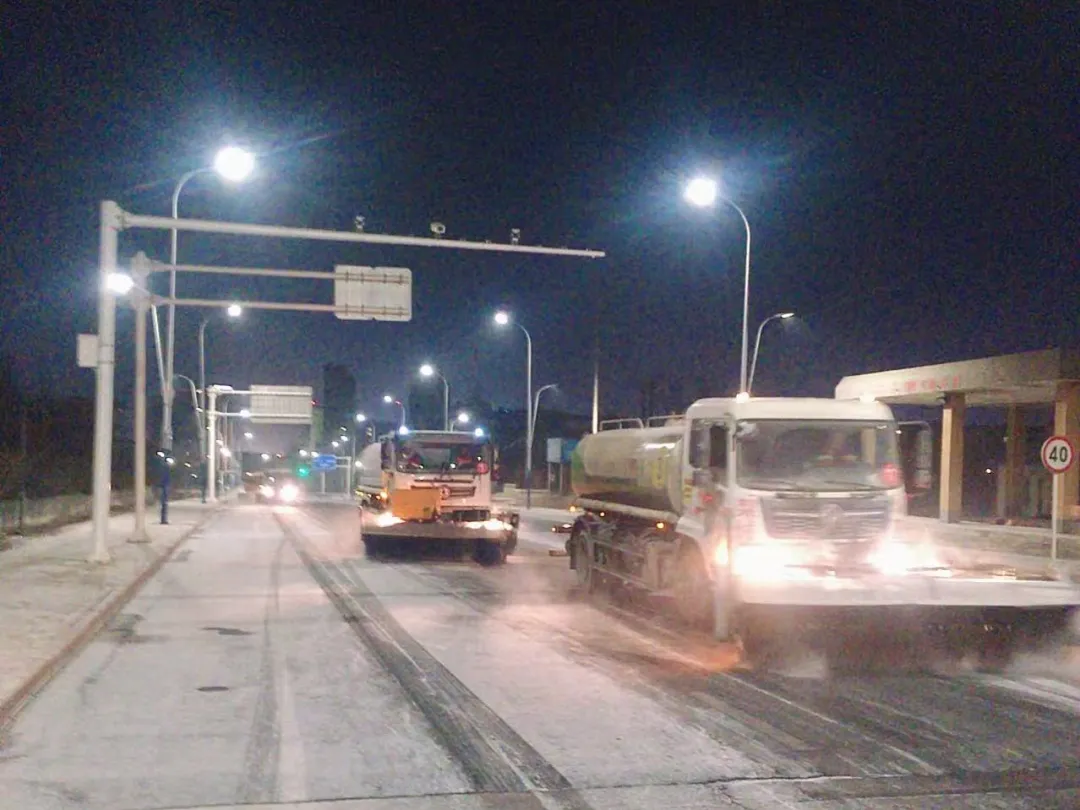 夜间降雪后,共出动清雪人员800余人,调配大型清雪车、滚雪刷、吹雪机等设备60台,聚焦石化大道、新华路、机场路等26条核心路段,采取“先主后次、机械为主、人工为辅”高效作业策略。凌晨降雪强度最大时,清雪机械梯队便已上路开展首轮作业,实现“雪随下随清”。
