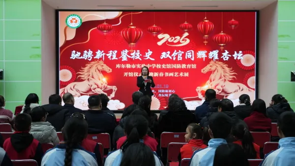 1月19日,库尔勒市实验中学举办校史馆、国防教育馆开馆仪式暨迎新春书画艺术展。