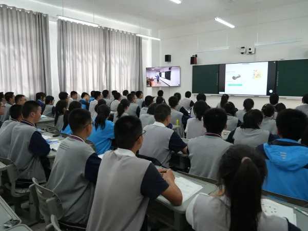 库尔勒市第二十一中学学生们通过“双师课堂”享受河北省石家庄市教师资源。