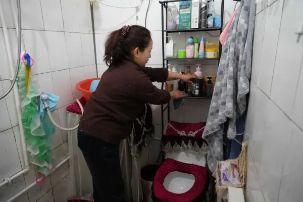 走廊尽头,一扇崭新的门后,是一间约四平方米、铺着亮白瓷砖的独立卫生间——抽水马桶、陶瓷洗手池、淋浴花洒、排气扇一应俱全,整洁而明亮。阿依努尔轻轻按下冲水按钮,水流轻快旋落,迅速完成冲洗。“夏天去学校前,家里还是老旱厕,这次回来,感觉像换了个家!冬天再也不用迎着寒风跑出去上厕所了。”阿依努尔说。