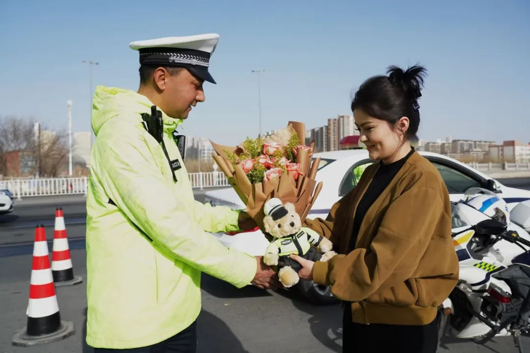 第二天下午,当布麦热姆和丈夫手捧鲜花出现在买买提艾力的执勤岗位前时,这位从警15年的交警不好意思地笑了:“就那么点小事,还专门来道谢。”