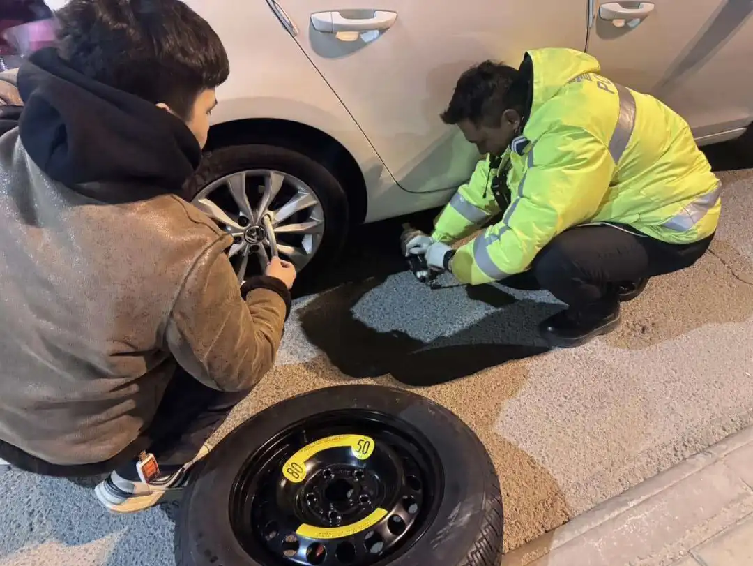 此时正值春节假期,附近的汽修店早已关门歇业。看着夫妇俩焦急的模样,买买提艾力一边耐心安慰,一边积极想办法。得知车上有备胎后,买买提艾力二话不说,挽起袖子动手帮忙,卸胎、换胎、拧紧螺丝……经过20分钟的忙碌,车辆成功恢复正常,可正常行驶。