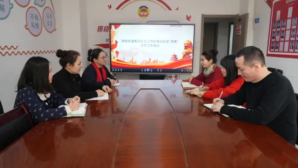 团结街道梨花社区干部与驻社区工作队队员围绕社区存在的问题进行集体讨论和协商。