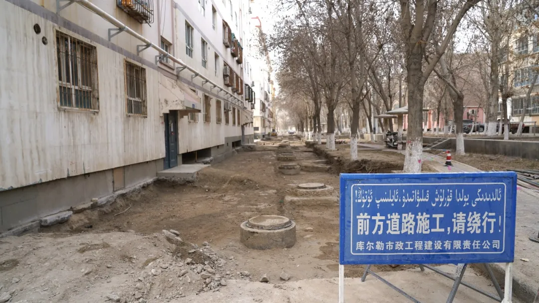 3月18日,走进库尔勒市东站片区平安路老旧小区改造项目现场,一派繁忙而有序的施工景象。