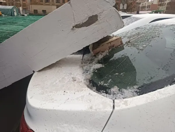 近日,受强对流大风天气影响,迎宾街道冠农社区冠农花园城邦小区未建设空地临时围栏被大风刮倒,倒伏围栏砸中9位居民停放在停车场的车辆,造成车身不同程度受损。