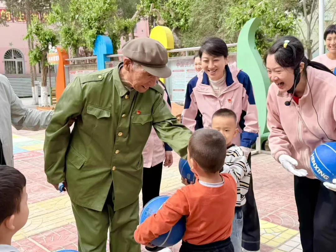 4月21日,库尔勒市第二幼儿园邀请全国模范退役军人、自治区道德模范、“绿化老兵”王成帮开展“童心向党·红色基因代代传”红色榜样宣讲活动,全园师生与榜样近距离互动,汲取奋进力量。