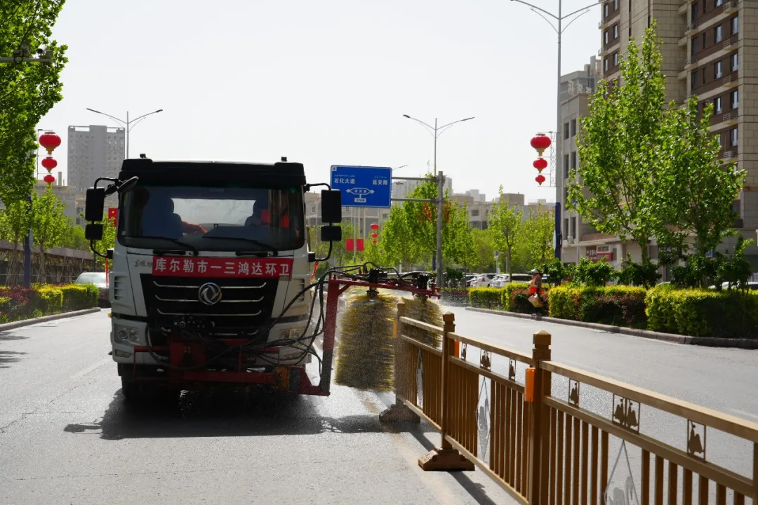 靓丽迎“五一”!库尔勒市第二轮道路深度洗扫专项行动启动