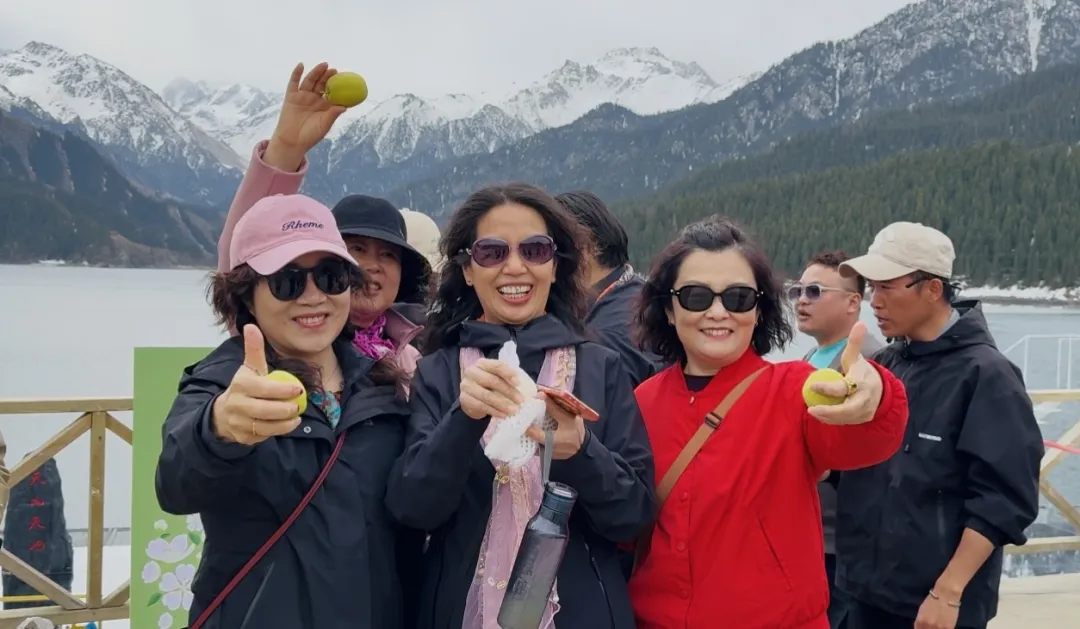 推介团队走进新疆天山天池风景名胜区,在雪山碧水间感受大自然的壮美,同时为后续活动预热。随后,团队转场至昌吉小吃街,一场活力十足的推介快闪在此拉开帷幕。推介官将清甜多汁的库尔勒香梨分发给现场的游客,浓郁果香瞬间吸引众多游客驻足围观,大家品尝后赞不绝口。接着,推介团队与昌吉市推介官一同打卡新疆大剧院网红路,两地文旅达人携手行走在民族特色建筑群前,用镜头记录下这一精彩时刻。