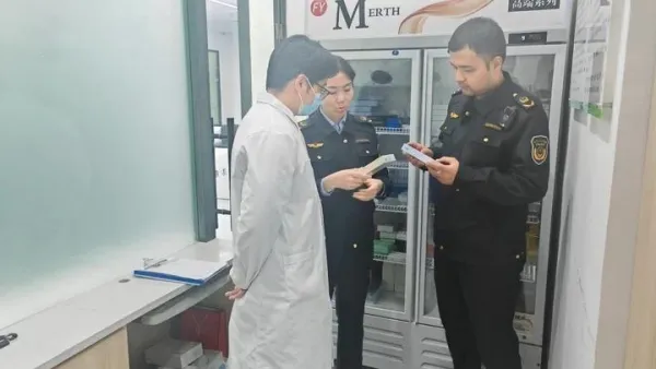 此次检查以注射用A型肉毒毒素为核心,核查储存条件、购进验收记录及运输冷链温度记录的完整性,确保全程温度控制在2—8℃的合规范围内。同时,检查透明质酸钠凝胶、医用胶原填充剂等需要冷藏的第三类医疗器械的购进票据、冷链运输凭证及贮存环境,严防因温度失控导致产品失效风险。检查中发现,1家机构购进的表皮生长因子无法提供冷链运输票据,存在质量安全隐患,执法人员当场责令整改。