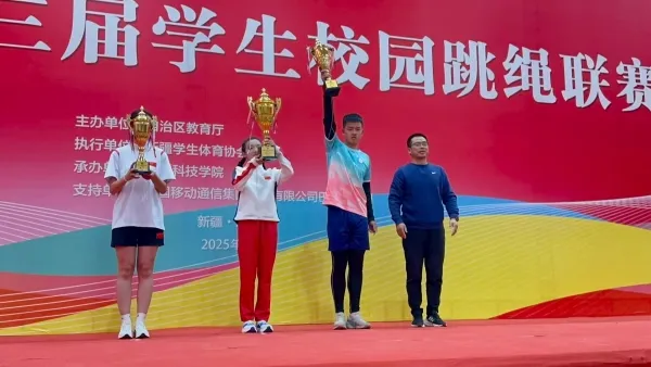 这支平均年龄仅14岁的队伍,成长轨迹清晰可见。去年初登自治区赛场时,他们获得了第四名;今年二度出征,凭借科学训练一举摘得团体赛亚军。跳绳队教练陈渺介绍,团队创新采用“三日循环训练法”,将速度突破、耐力打磨、技巧精进科学分配到每周训练,让每一次挥绳都精准高效,一次次实现赛场突破。