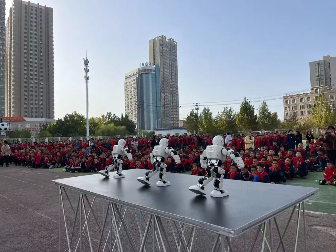 活动现场气氛热烈,系列精彩环节依次呈现。翼启星途无人机俱乐部工作人员操控小型穿越机升空,机身宛如“空中小精灵”,灵活完成360度翻转、定点悬停等特技动作,引得台下阵阵惊呼。库尔勒市科技馆带来的机器人表演同样吸睛,智能机器人随音乐有节奏地跳起舞蹈,灵动的动作赢得学生阵阵掌声。
