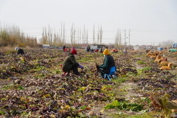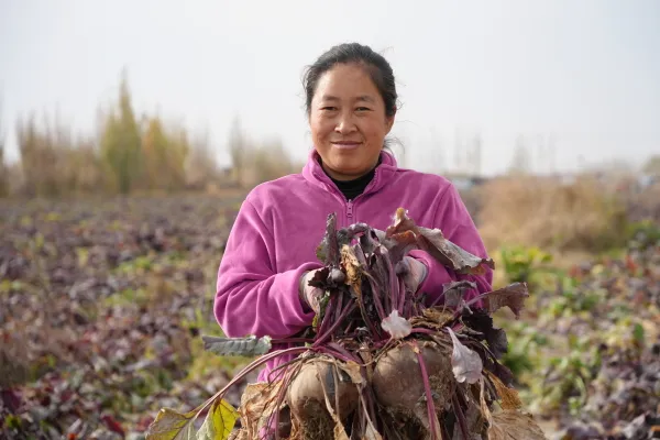 产业发展的红利有效辐射至周边农户。“我们夫妻俩在这里工作了四年,每人每月有4000多元收入,既能照顾老人和孩子,又有稳定收入,日子越过越红火。”正在田间分拣红甜菜的农户斯拉吉·买买提说。